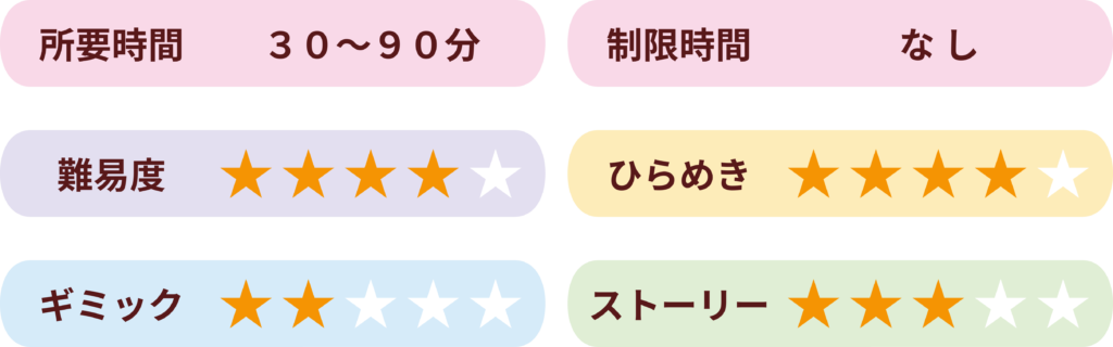 謎は、30~60分程度の手軽なものをメインに数多く取り揃えております。