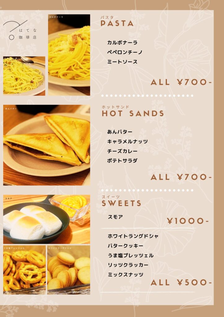 なお、パスタやホットサンド、アイスクリームといったフードメニューもご用意しておりますので、ランチタイム、ティータイムにもぜひ♫